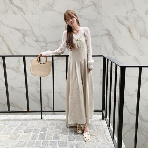 |CHO59CF|여성용 여름 슬림 끈 나시 레이어드 롱 드레스
