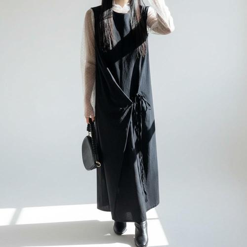 |CHO59D0|여성 루즈핏 시스루 스트랩 롱 원피스 사이드 리본 디자인