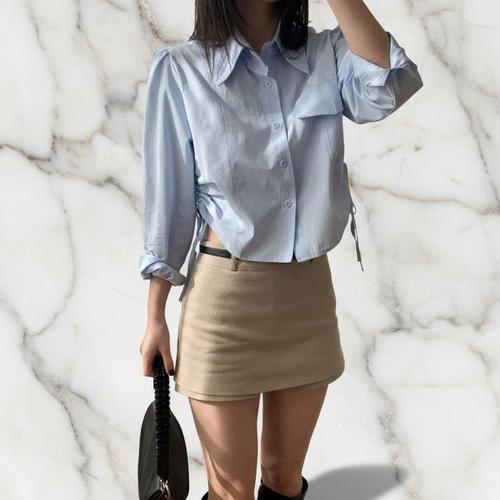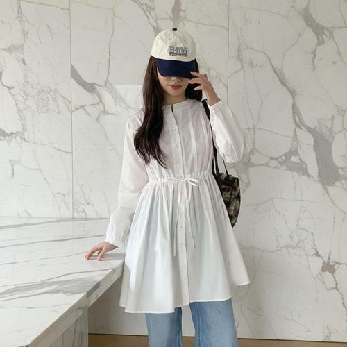 |CHO593E|여성 밴드넥 허리조임 플레어 미니드레스