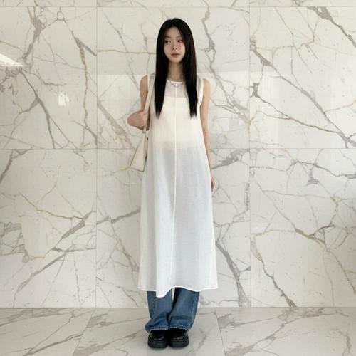 |CHO594A|여성 민소매 롱 원피스 라운드넥 포인트 디자인