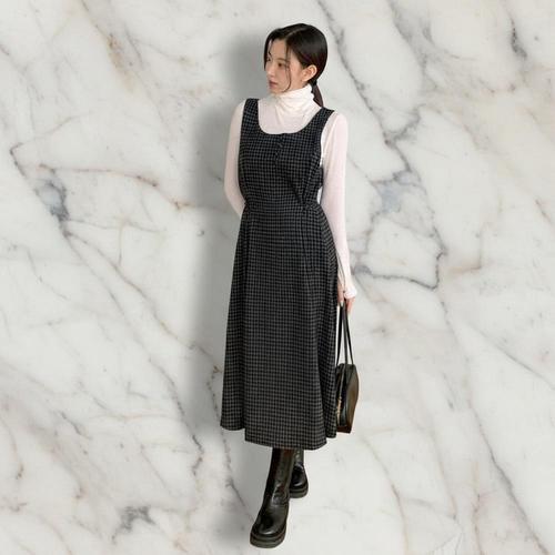 |CHO593C|여성용 체크 패턴 레이어드 민소매 드레스 가을겨울용
