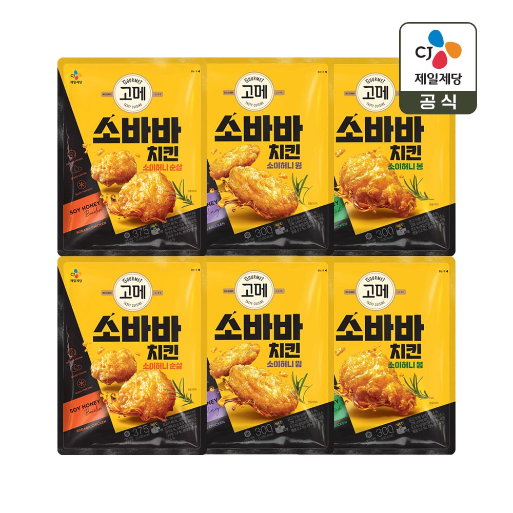 CJ 고메 소바바치킨 소이허니 3종 각 1개 순살 375g 봉 300g 윙 300g 치킨