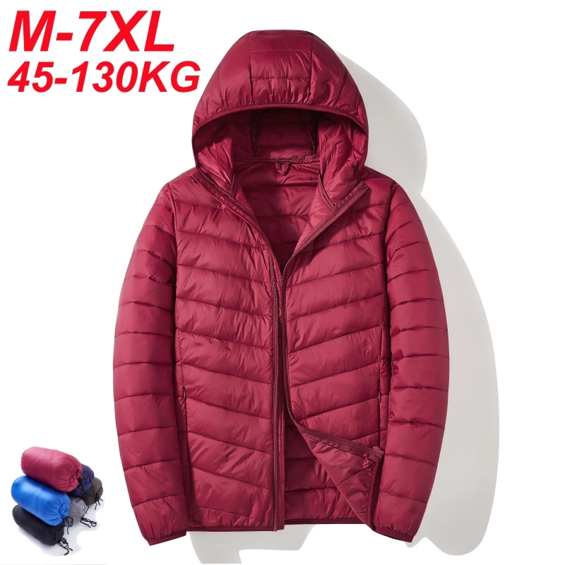 후드 남성용 다운 재킷 겨울 캐주얼 모자 포함 화이트 덕 다운 패딩 경량 패딩 코트 남성용 대형 사이즈 5XL 6XL 7XL 135kg