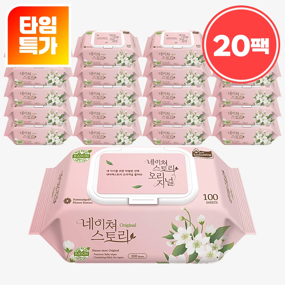 [알리 단독특가/쿠팡리뷰 5만개] 두껍고 부드러운 엠보싱 캡형 오리진 물티슈 100매 20팩