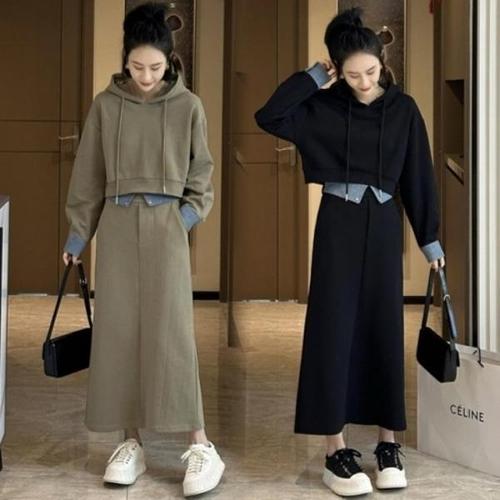 [신상오픈런]|CCD21DC|여자 크롭 후드티 롱 스커트 세트_19141588_597559