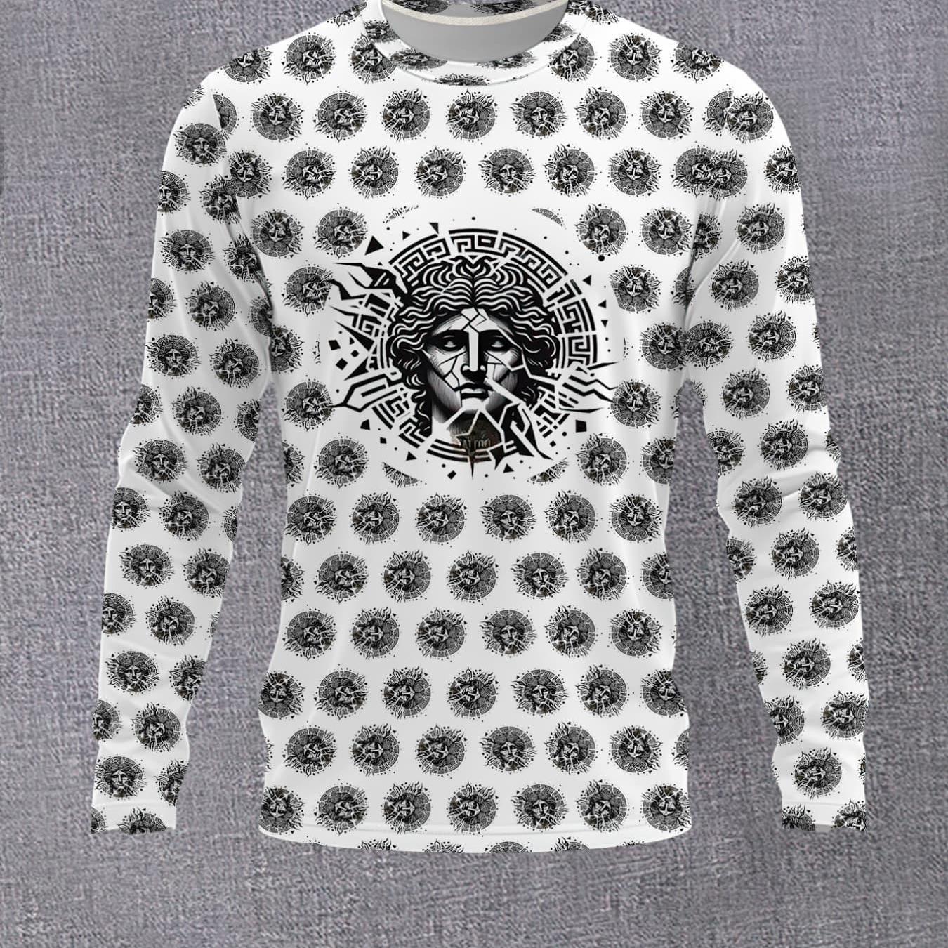 TEMU 남성용 트렌디 크루넥 긴팔 티셔츠 패션 추상적인 메杜사 머리 프린트 TopArt 패턴 베이스 레이어 캐주얼 다용도 아우터웨어 이너웨어 긴팔 티