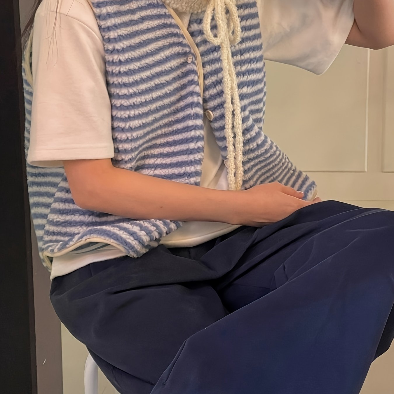 TEMU 여성용 포근한 기모 안감 V넥 민소매 조끼 - 캐주얼 버튼업 가디건, 골지 커프스, 가을/겨울에 완벽, 다용도 레이어링, 캐주얼 웨어 조끼 | V넥 조끼 | 기모 안감 조끼, 여성 조끼, 여성 조끼 탑, 여성 조끼 탑, 여성 조끼, 여성 재킷, 스타일리시 여성 조끼, 여성 민소매, 여성 조끼 가을 봄