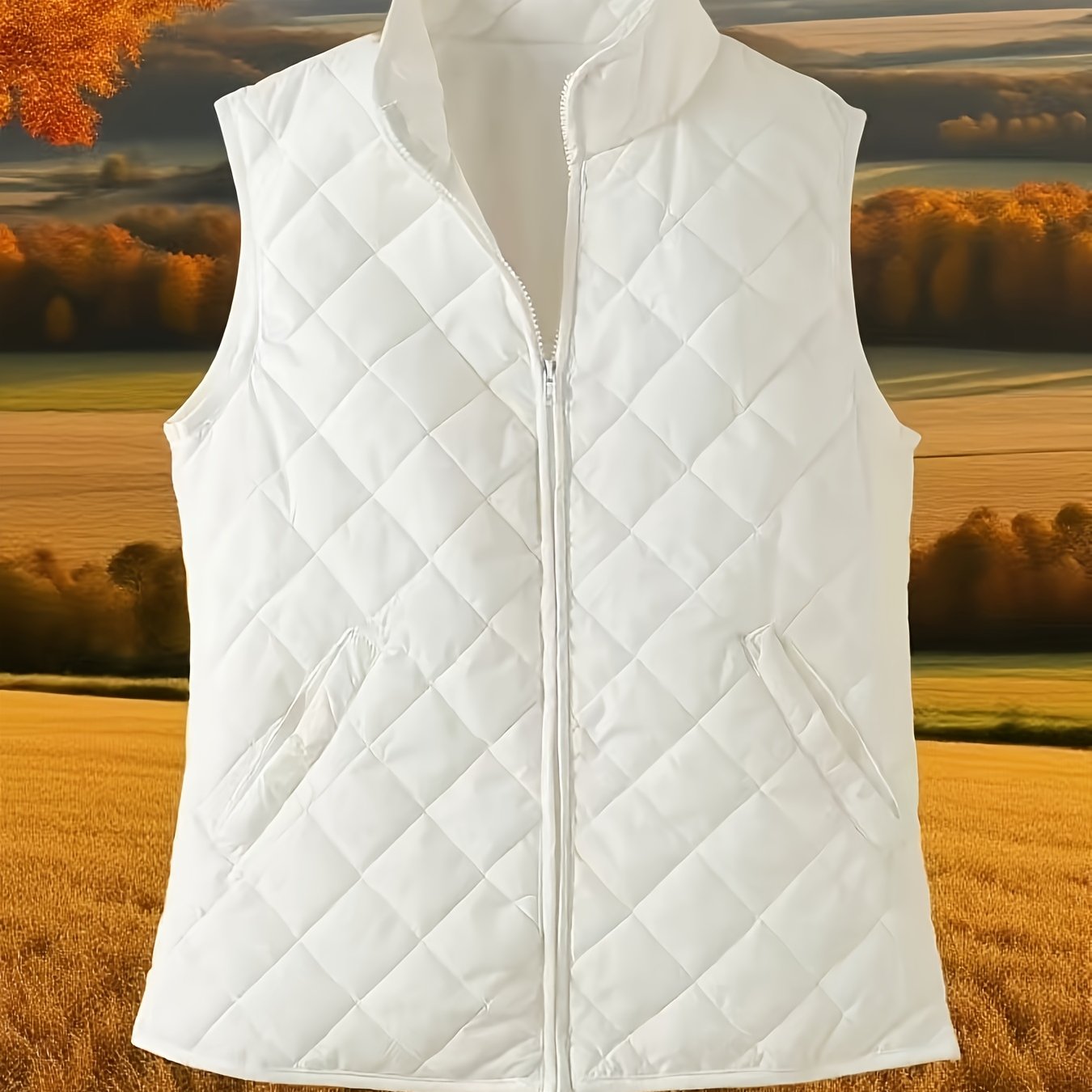 TEMU 여성용 우아한 민소매 재킷 - 풀 지퍼 앞면 클로저, 구조적인 논스트레치 원단, 가을/겨울 레이어링용 단색, 골드 톤 지퍼, 플레어 밑단, 세탁기 사용 가능, 겨울 코트 | 슬릭 핏 재킷 | 구조적인 디자인, 겨울 코트|비치웨어
