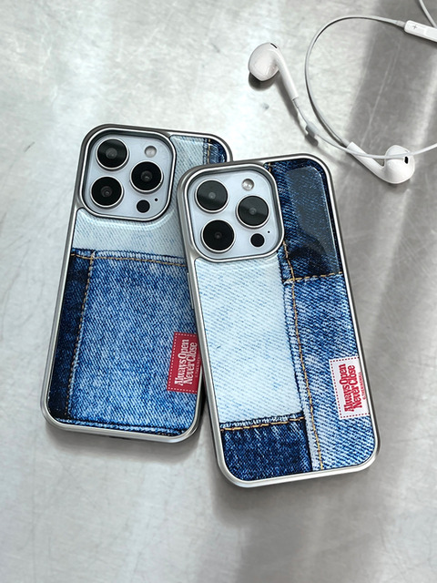 [더나인몰] 빈티지 데님 패치 라벨 [실버 에폭시 범퍼케이스]