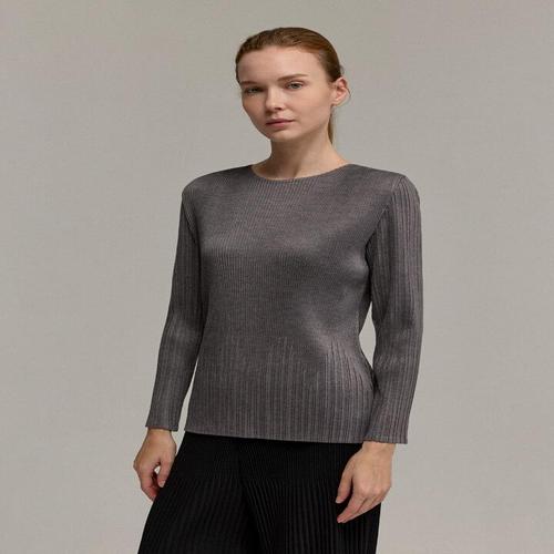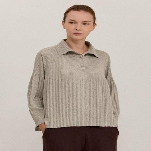 [플리츠미][플리츠미] 니트 셔츠 카라 릴리즈 플리츠 티셔츠_PPTSW025008