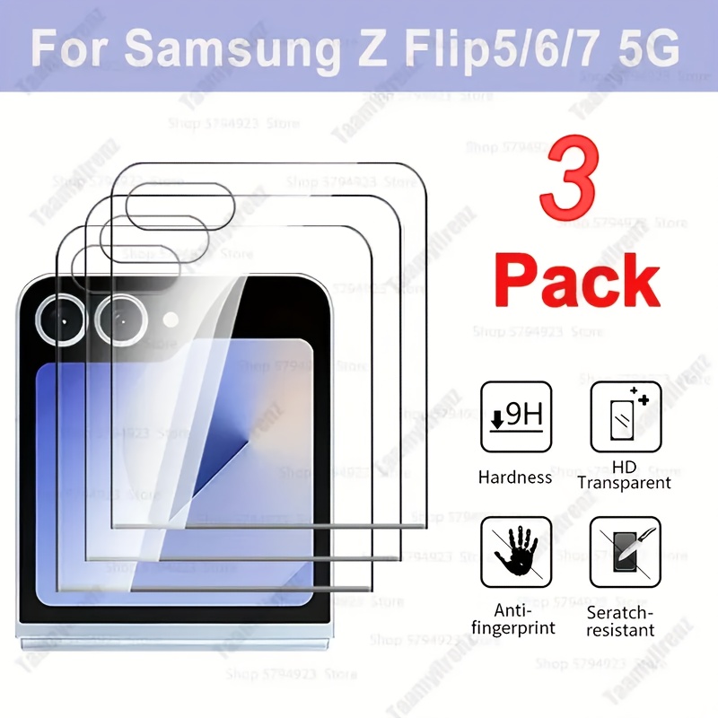 TEMU 갤럭시 Z Flip7, Flip6, Flip5용 강화 유리 액정 보호 필름 3매입, Z Flip 5, 6, 7 호환, 내구성 좋은 보호, 세련된 디자인, 고품질 필름, 보호 필름, 스마트폰 사용자, 갤럭시 보호필름, 휴대폰 필름, 휴대폰 보호, 매직존 강화유리필름, 액정필름 강화유리, 강화필름