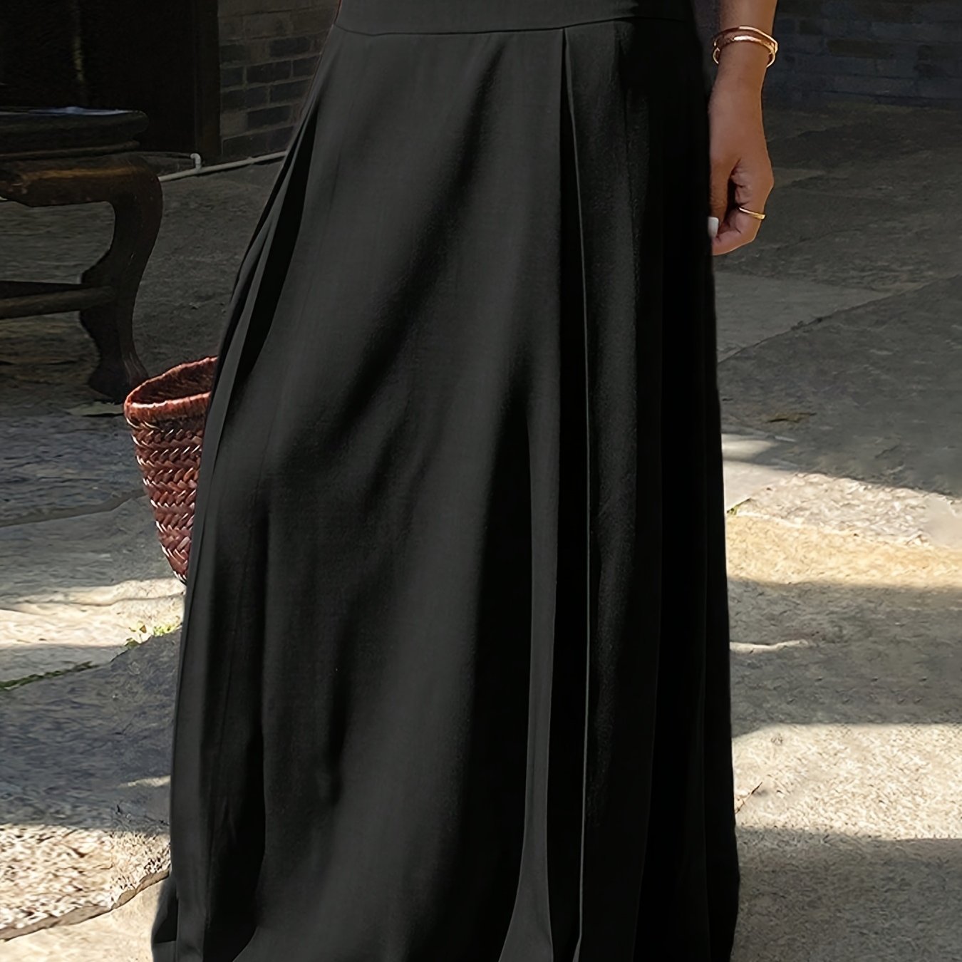 TEMU 여성 캐주얼 A라인 롱 스커트, 솔리드 컬러 플리츠 디자인, 패션 파티 및 댄스에 완벽|치마바지