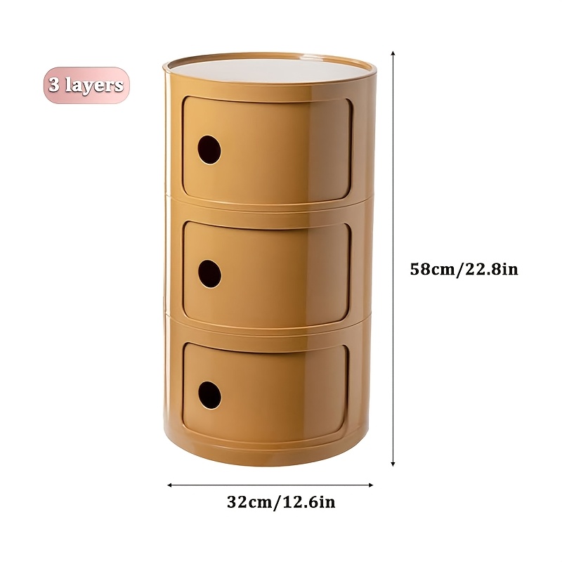 TEMU 3단 원형 ABS 플라스틱 수납장 서랍형 협탁 및 사이드 테이블, 침실 거실용, 컴팩트한 모던 가구, 진저 옐로우 독립형 선반장, 좁은 공간용 공간 절약형, 조립 불필요