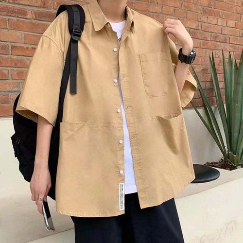 TEMU 남성용 솔리드 컬러 코듀로이 라펠 긴팔 셔츠, 루즈 캐주얼 풀오버, 봄과 가을 착용에 적합