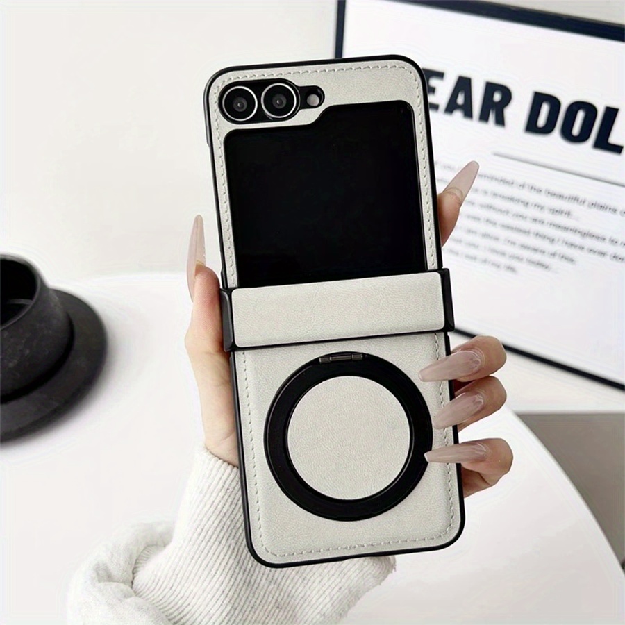 TEMU 휴대폰 케이스 - 삼성 Z Flip 6 호환 케이스, 접이식 스크린, 마그네틱 링, 회전 스탠드, Z Flip 5, 4, 3용 완전 보호 커버