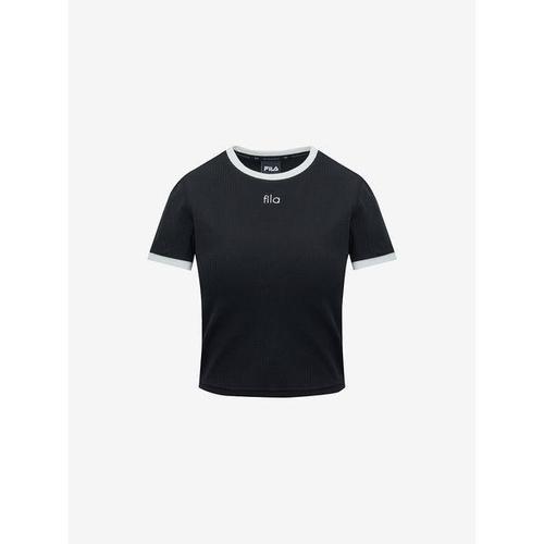 [휠라]냉감 골지 캡내장 크롭 반팔티 (FS2ITH2253F_BLK)