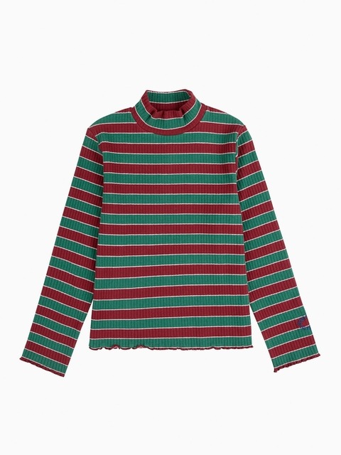 [보보쇼즈] 멀티컬러 스트라이프 터틀 넥 티셔츠 B225AC026