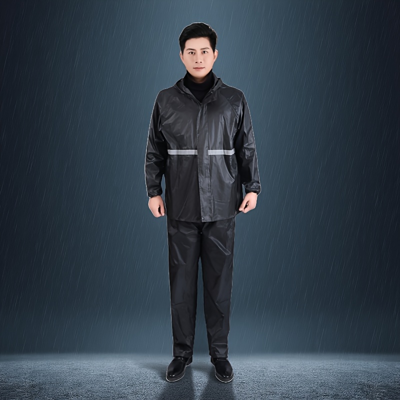 TEMU 폭우 방지 아웃도어 라이딩 남녀공용 레인팬츠 세트 노동보호 대형 앞뒤 반사 스트립 라이딩 포초