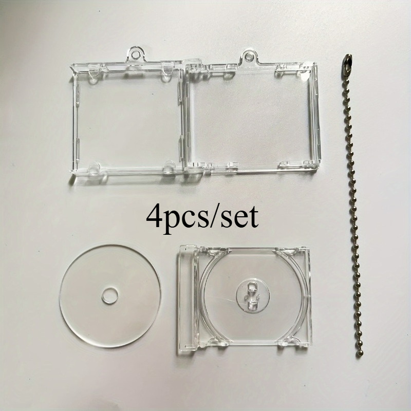 TEMU 미니 CD 케이스 스타일 휴대폰 펜던트 4개 세트 - 휴대폰 장식을 위한 휴대용 사진 케이스 펜던트, 휴대폰 액세서리용 체인, 투명 미니 CD 케이스 키체인.