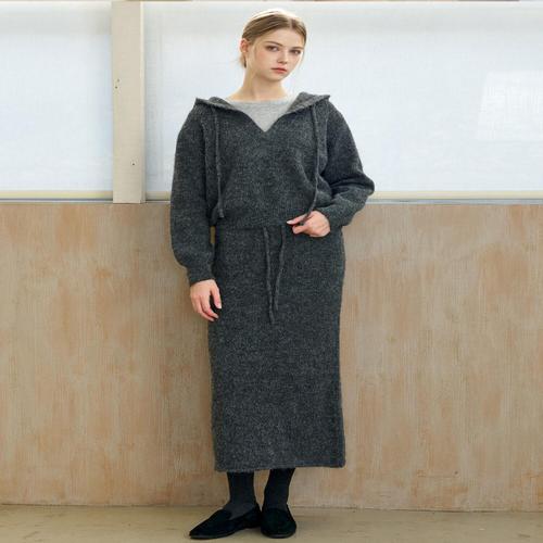 [GGPX]베이직 후드 니트 롱 니트 밴딩 스커트 셋업 (GPDOW016D)