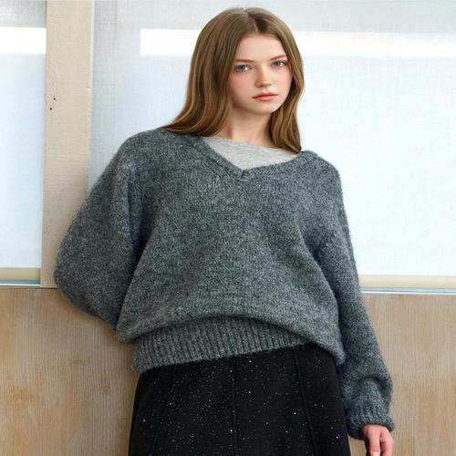 [GGPX]브이넥 부클 긴팔 울 니트 (GPDKT048D)