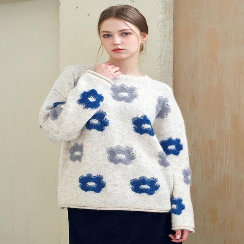 [GGPX]라운드넥 플라워 자수 오버핏 울 니트 (GPDKT044D)