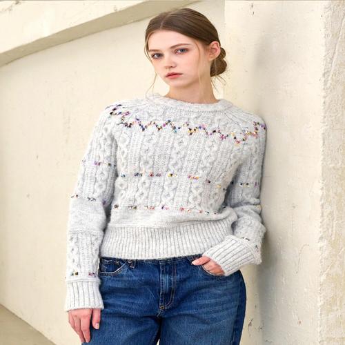 [GGPX]라운드넥 멀티 패턴 꽈배기 울 니트 (GPDKT043D)