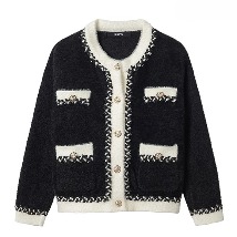 GGPX 카라넥 데님 배색 금장 버튼 케이블 긴팔 가디건 GODCK009D 2109003