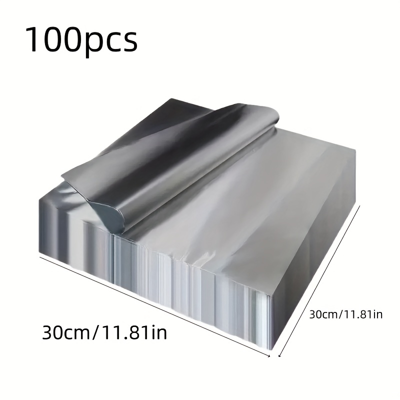 TEMU 50/100개 슬라이스 알루미늄 호일 바베큐 조개 에어프라이어 고온 저항 알루미늄 호일 종이, 튀김치킨 버거 포장 용지