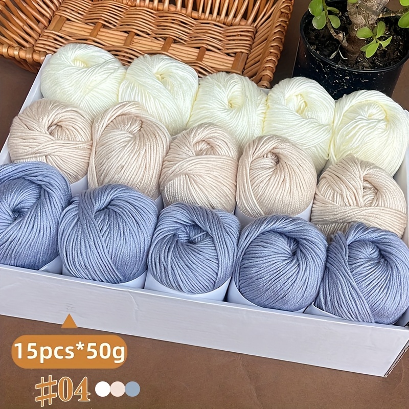 TEMU 750g, 15pcs 럭셔리 블렌드 얀 세트 - 삼색 조합 [약 750g/팩당 15볼], 소프트 라이트 베이지, 수제 얀, 담요, 스카프, 가디건, 숄 및 공예품에 적합