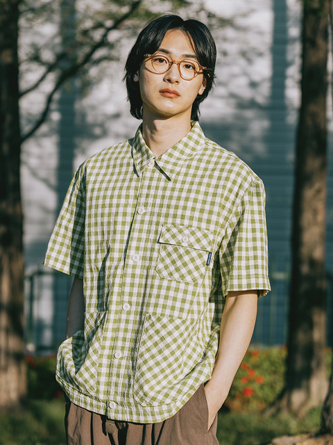 [시리즈](본점)(역시즌)[series;] 옐로우핀 그린 파나마 체크 릴렉스핏 셔츠 ( SASFM25441GRX )