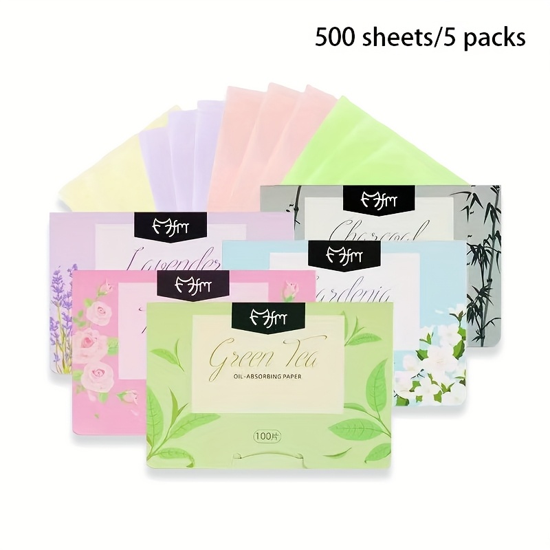 TEMU 5팩 효율적인 오일 흡수 페이퍼, 총 500매, 얼굴에 남아 있는 과도한 기름기를 쉽게 제거하여 피부를 산뜻하고 매트하게 유지합니다. 모든 피부 타입에 적합한 휴대용 뷰티 필수품입니다.