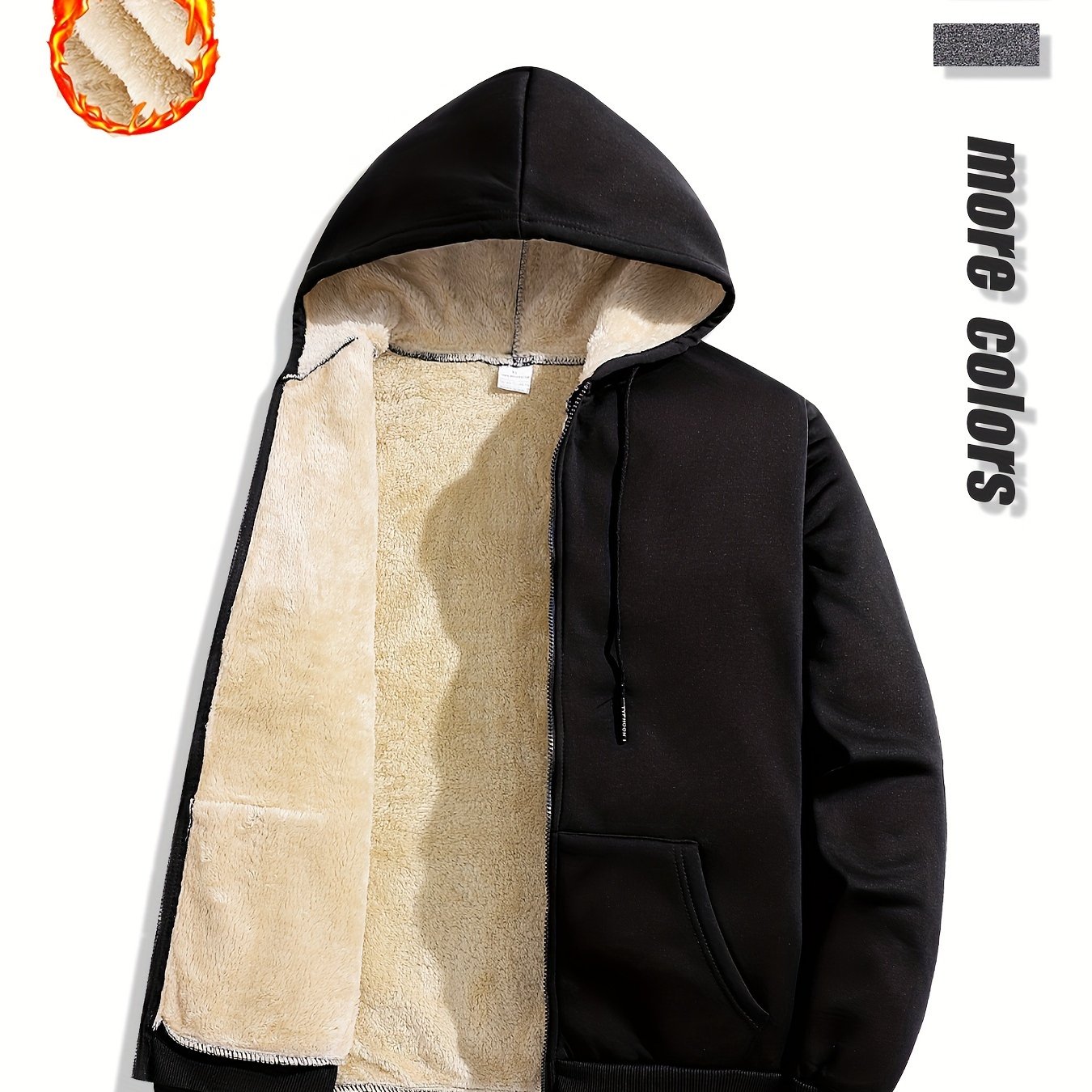 TEMU 남성용 가을/겨울용 지퍼 및 후드 플리스 재킷. 두꺼운 단색 상의 디자인. 부드럽고 주름 방지, 보풀 방지 기능으로 야외 활동 및 캐주얼 홈웨어를 따뜻하게 가꿔줍니다.