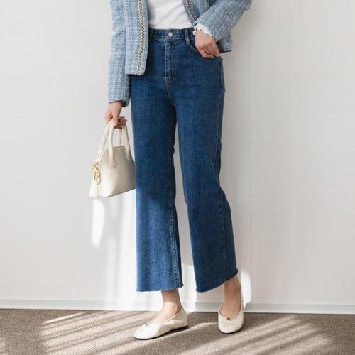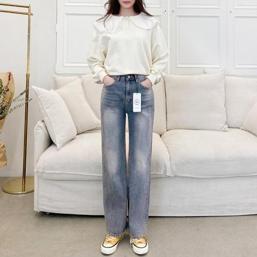 [미라클세븐][M7] 여자 논스판 H라인 워싱 세미와이드 청바지