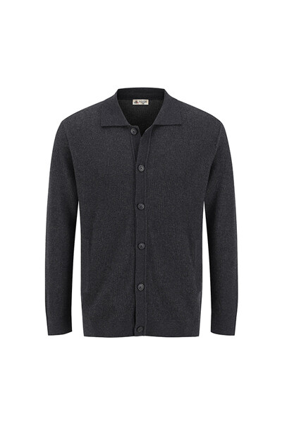 남자 여름 스카시 골지 카라 반팔 니트 가디건 SG-CAH-Q082-차콜