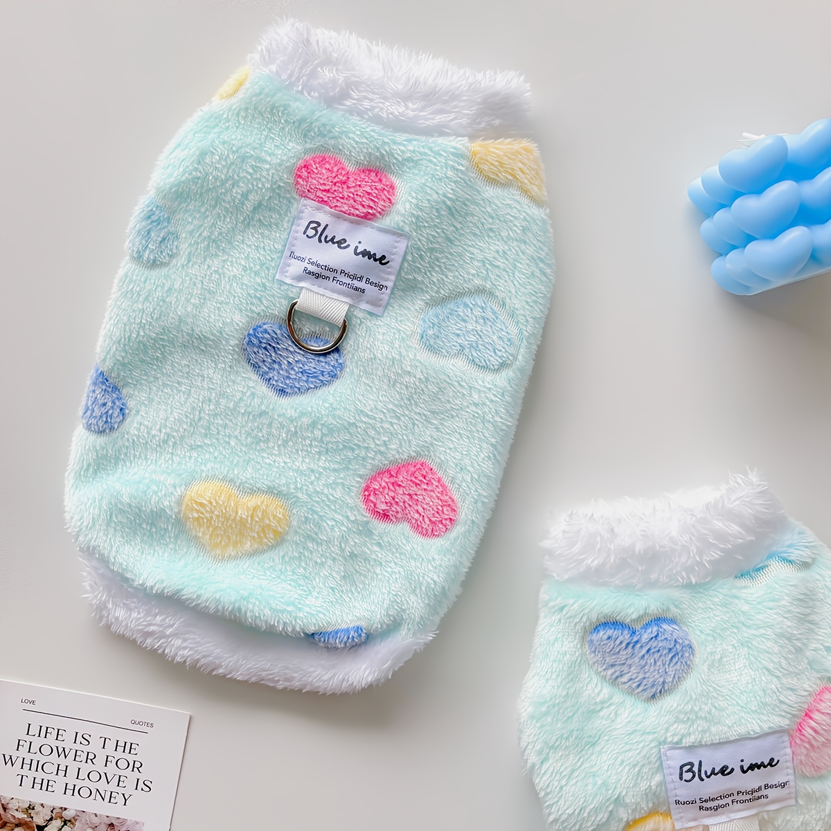 TEMU 가을 겨울 애완동물 의류, 두껍고 따뜻한 고양이 조끼, 트랙션 버클, 하트 프린트, 심플하고 편안한