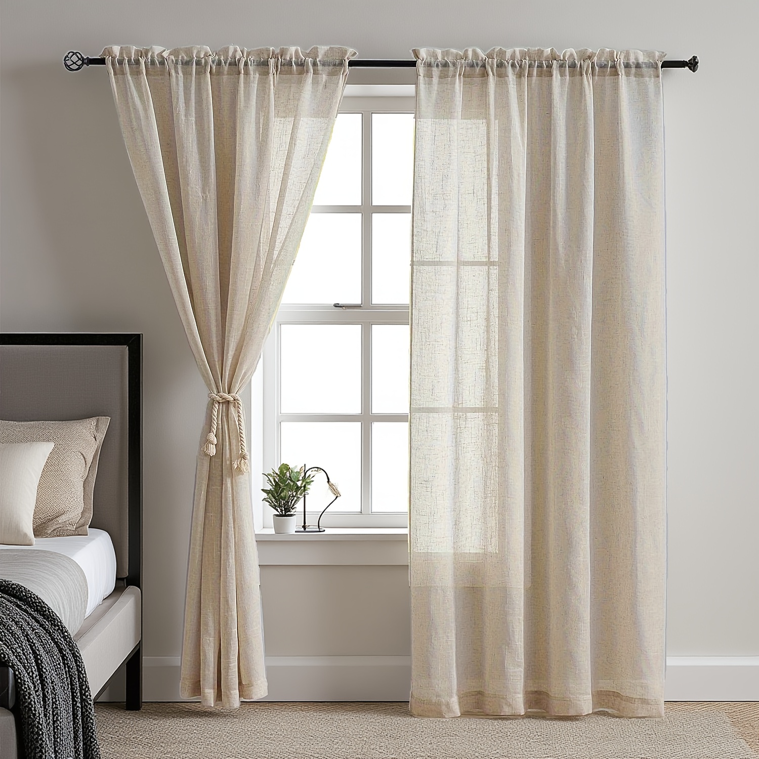 TEMU 일본 스타일 모조 리넨 창문 스크린 2개 세트, 거실 및 침실 장식용 걸이형 폴 타입