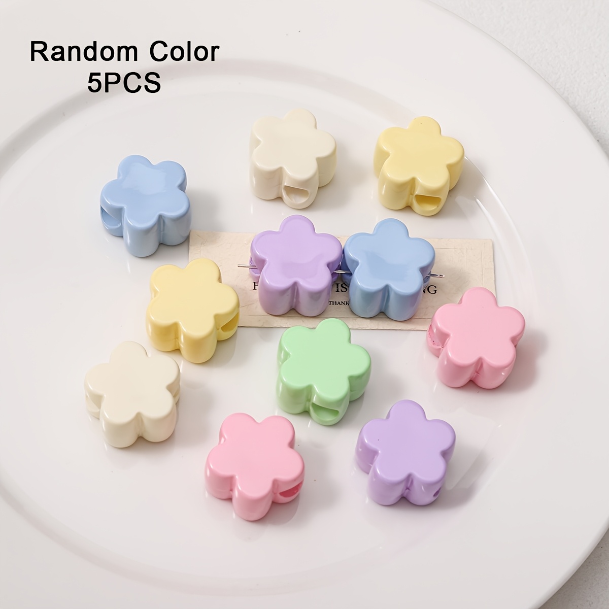 TEMU 스타일 아크릴 봄 색상 하트 대구멍 구슬 5개, DIY 폰스트랩 키체인 액세서리용 휴일 선물