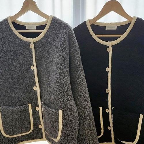 [강물처럼]위쉬몰 DL 랍바버튼배색뽀글자켓(K780H502) 빅사이즈
