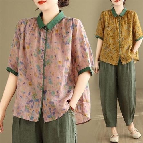 여자 썸머 린넨 에스닉 나염 오버핏 블라우스
