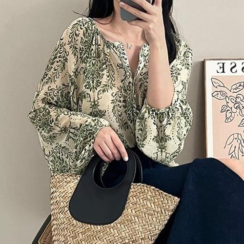 [엄지척]여성 플라워 나염 브이넥 긴팔 예쁜 블라우스_19642934_667501