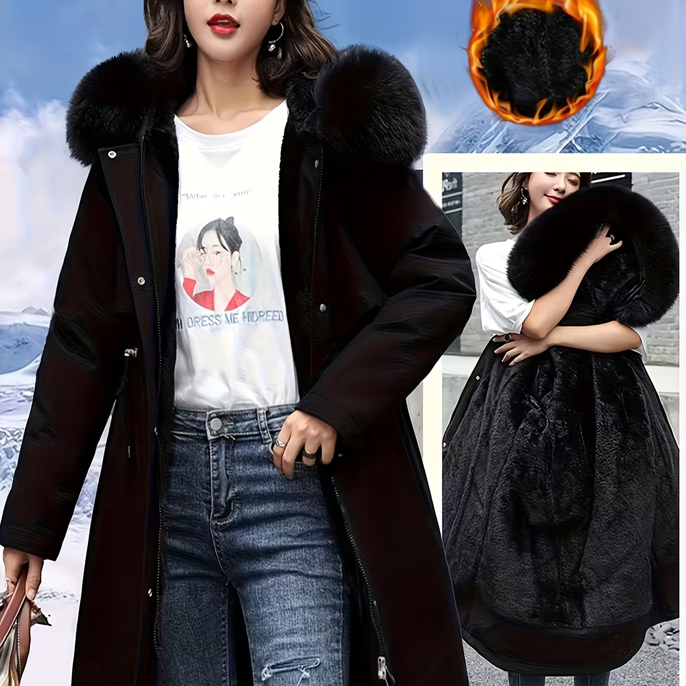TEMU 플러스 사이즈 - 플러스 사이즈 따뜻한 지퍼 포켓, 플러시 안감이 있는 롱 파카 코트, 겨울 및 휴일 선물용으로 적합