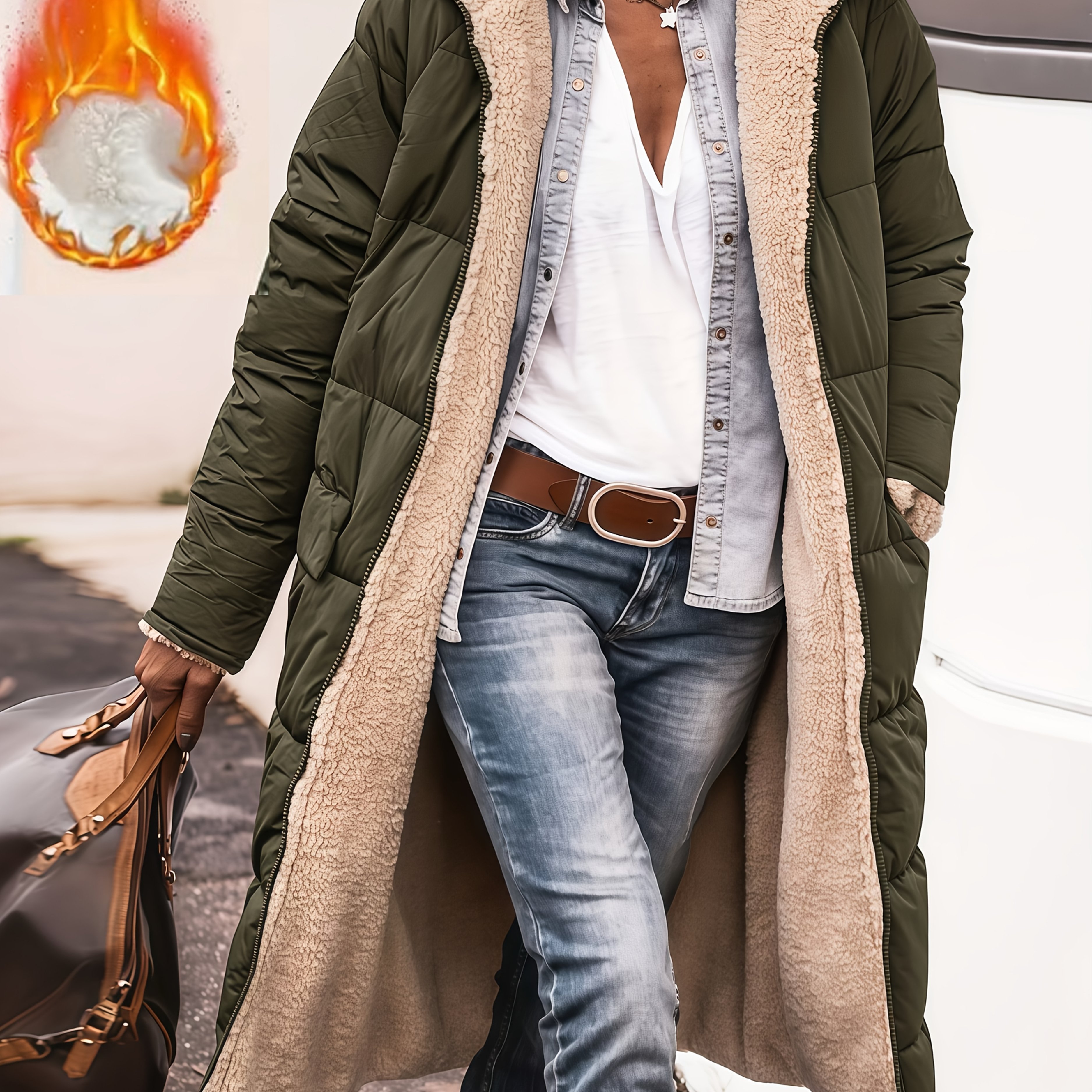 TEMU 유럽&미국 스타일 여성용 롱 두꺼운 겨울 후드 코트