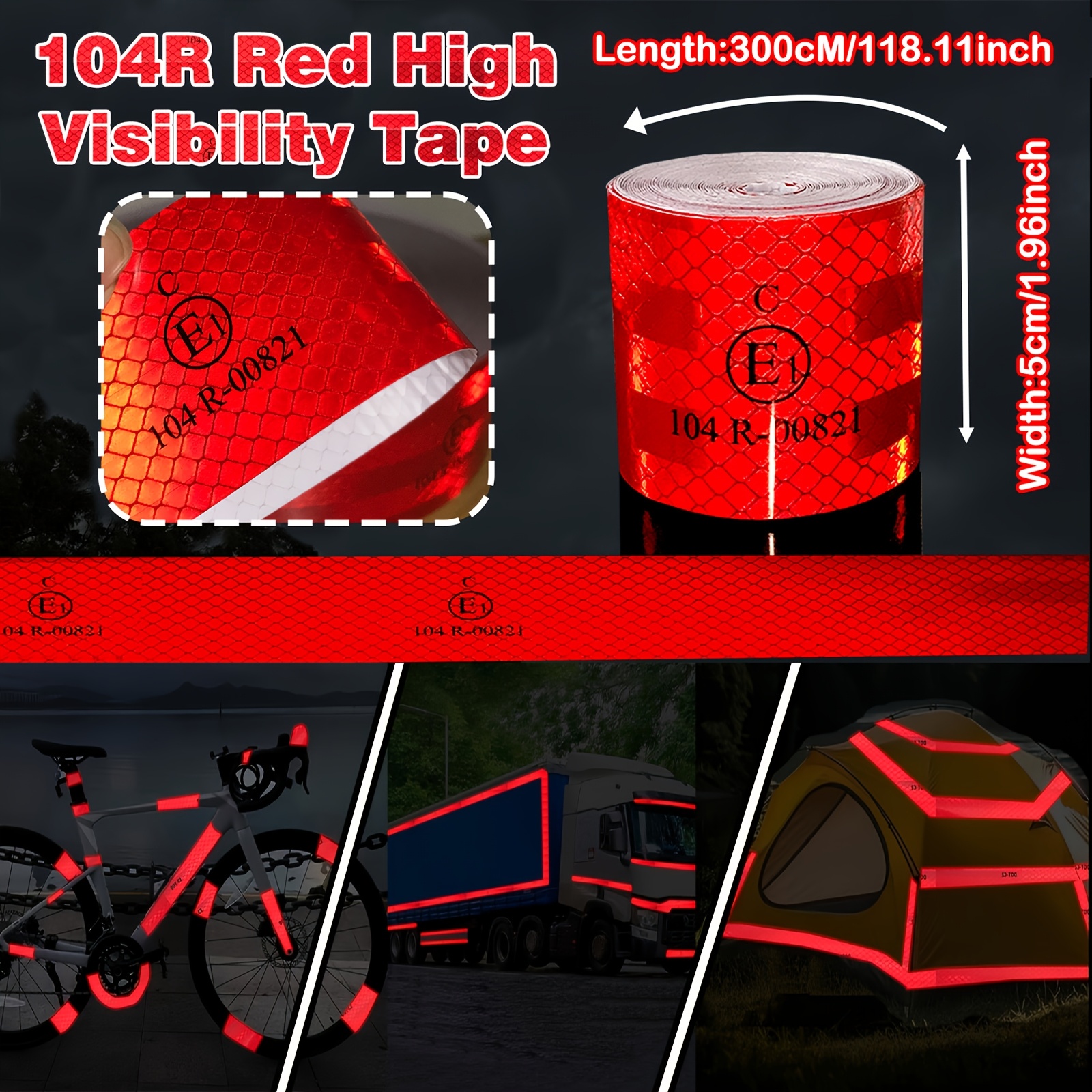 TEMU 104R 레드 고휘도 반사 테이프 | 트레일러, 트럭, 밴, 자전거, 보트용 자가 접착 안전 경고 스트립 - 내구성 있는 전천후 보호, 2" x 39.4" 롤, 폴리에틸렌 테레프탈레이트 재질