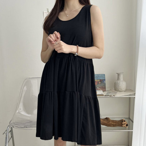 [시크블랙]틸란도 시스루 레이어드 사이드 리본 캉캉 끈나시 롱 원피스