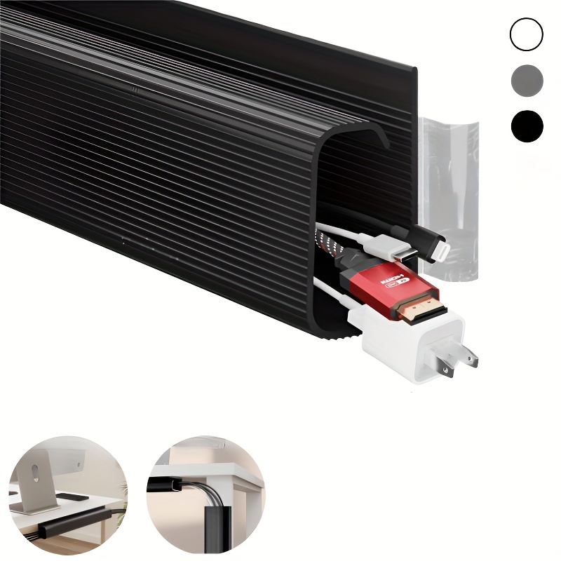 TEMU 2pcs 블랙 PVC 케이블 관리 채널, 15.7" 길이, 모니터 및 컴퓨터용 자체 접착식 데스크 아래 정리기, 드릴 프리 설치, 다중 와이어 관리, 내구성 있는 폴리비닐 클로라이드 소재, 컴퓨터 액세서리 | 세련된 케이블 관리 | 내구성 있는 PVC 채널, 케이블 관리 정리기, 케이블 관리 정리기 및 보관