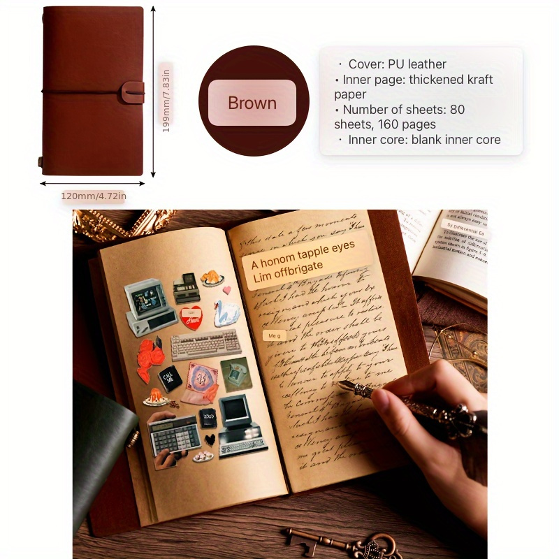 TEMU 1개 빈티지 클래식 저널 노트북, 다양한 색상 선택 가능, 휴대용 여행 저널 노트북, 80매 160페이지 내부 코어 빈 노트북, 사무실용 손글씨 노트북