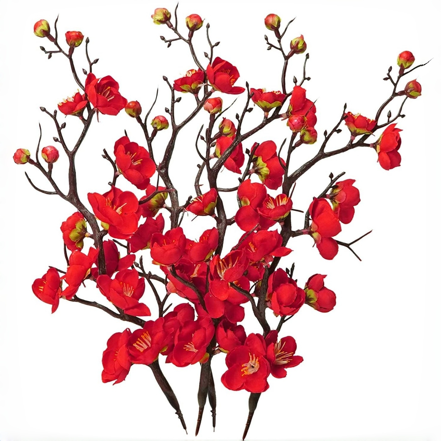 TEMU 4개 인조 매화 가지 - 고품질 리얼리스틱 인조 꽃 장식, 실크 등나무 꽃 팁, 실내외 장식용, 홈, 오피스, 정원, 계절 휴일 테이블 장식에 완벽, 순백, 핑크, 레드