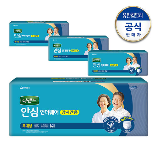 [디펜드] 안심 언더웨어 장시간용 요실금 팬티형 남녀공용 성인기저귀 특대형 14매x4팩