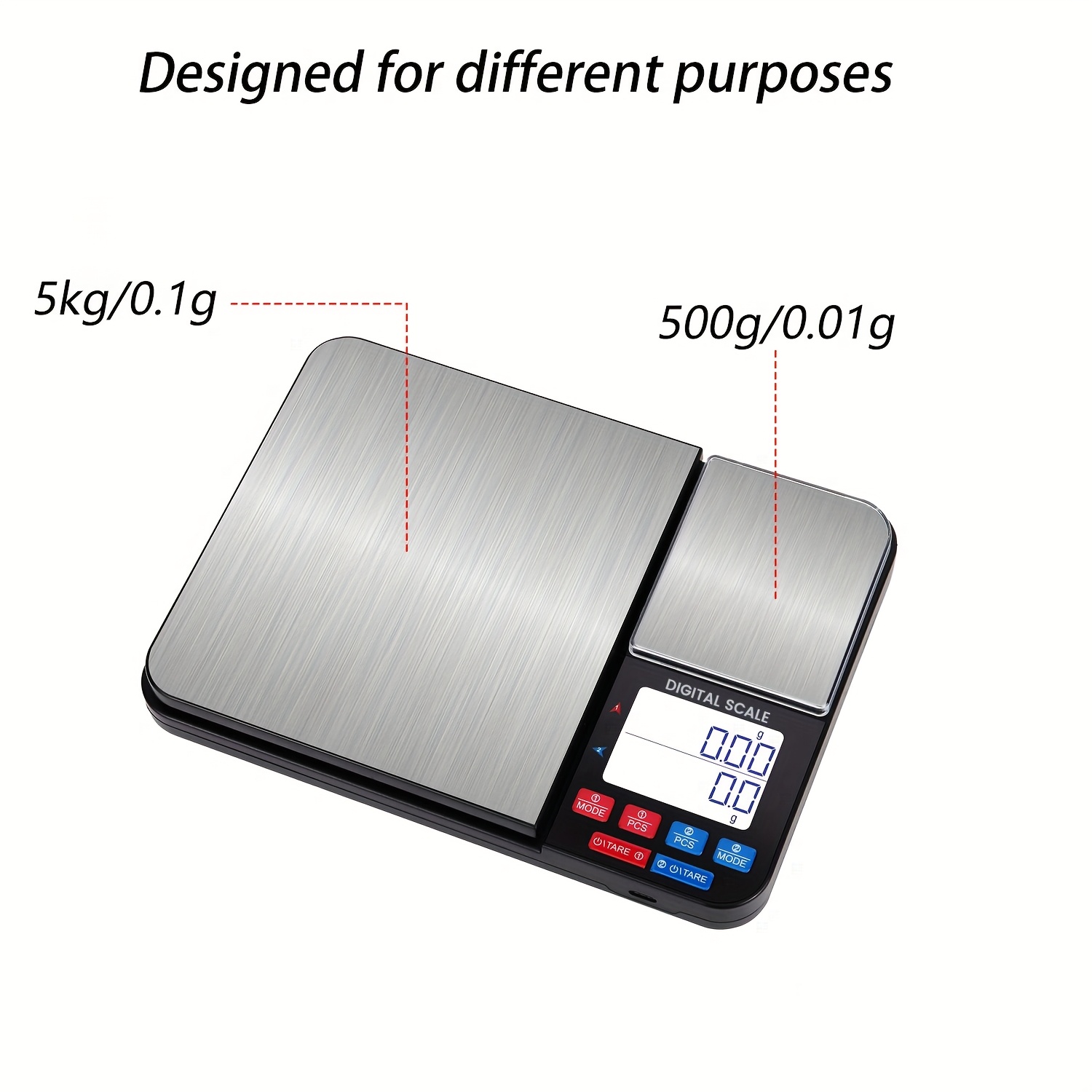 TEMU 2개 독립 계량 영역 주방용 저울 5kg/0.1g + 500g/0.01g 고정밀 대용량 전자저울, 다중 단위 변환 기능 (조리/베이킹/디저트 측정에 적합) AAA 배터리 3개 필요 (포함되지 않음)